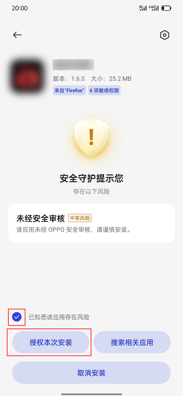 由于各手机厂商的限制,如果安装过程中出现异常,可以尝试以下操作